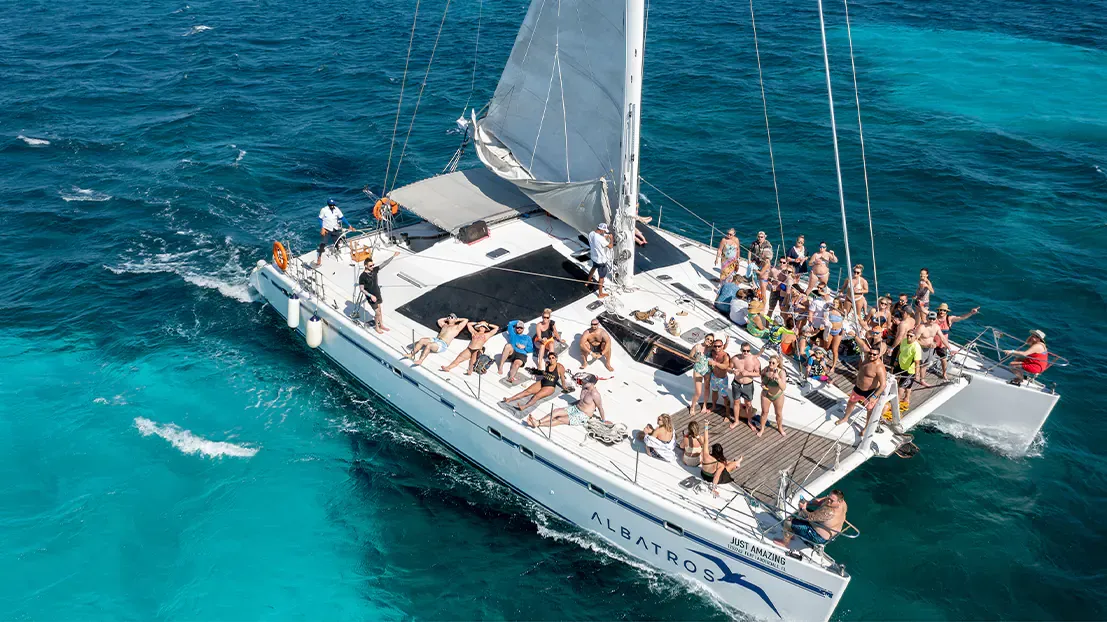 Dance the day away at the ultimate adults-only boat party aboard a stunning luxury catamaran. This +18 years experience includes an open bar with unlimited drinks, breathtaking views, snorkel adventure at El Meco reef and the best on-board atmosphere. Once in paradise, enjoy an exclusive party with a live DJ at a top-notch Isla Mujeres beach club for the ultimate island vibe.