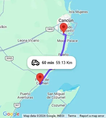 How long does it take from Cancun Airport to Riu Tequila Playa del Carmen?