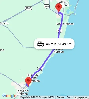 The transfer from Cancun Airport to Secrets Moxché Playa del Carmen typically takes about 50–60 minutes by private transportation, depending on traffic and the arrival terminal. Pre-booked private transfers offer the most direct and comfortable route to the resort.