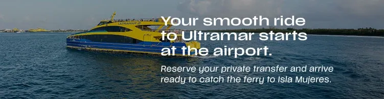 The easiest, most comfortable and safest way to get from Cancun Airport to Ultramar Isla Mujeres is to book a private shuttle. This service will take you directly to the ferry dock and can even include the Isla Mujeres ferry tickets.